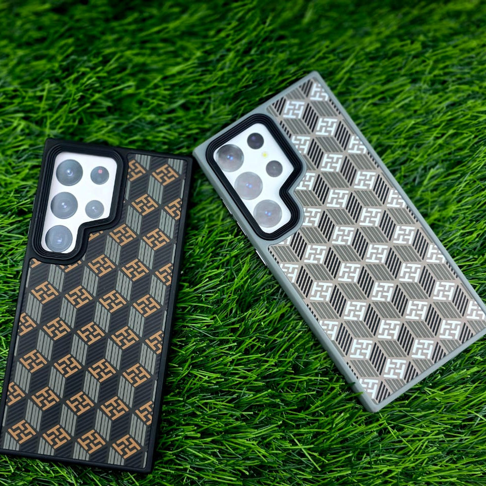 Premium Geometric Design: Features a luxury-inspired 3D geometric pattern similar to high-end fashion brands like Goyard, giving the phone a sophisticated look.