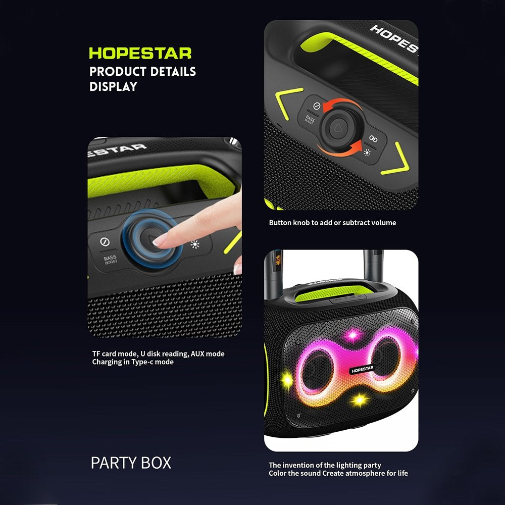 6. Functions: Support Bluetooth Connection, TWS Connection, AUX-IN/USB Pen Drive, Micro SD Card. Hands free call, Wireless MIC, EQ modes, RGB Modes, 20W PD Charging Function