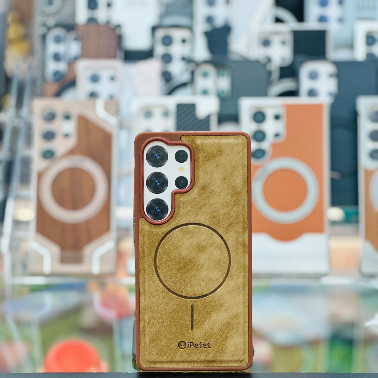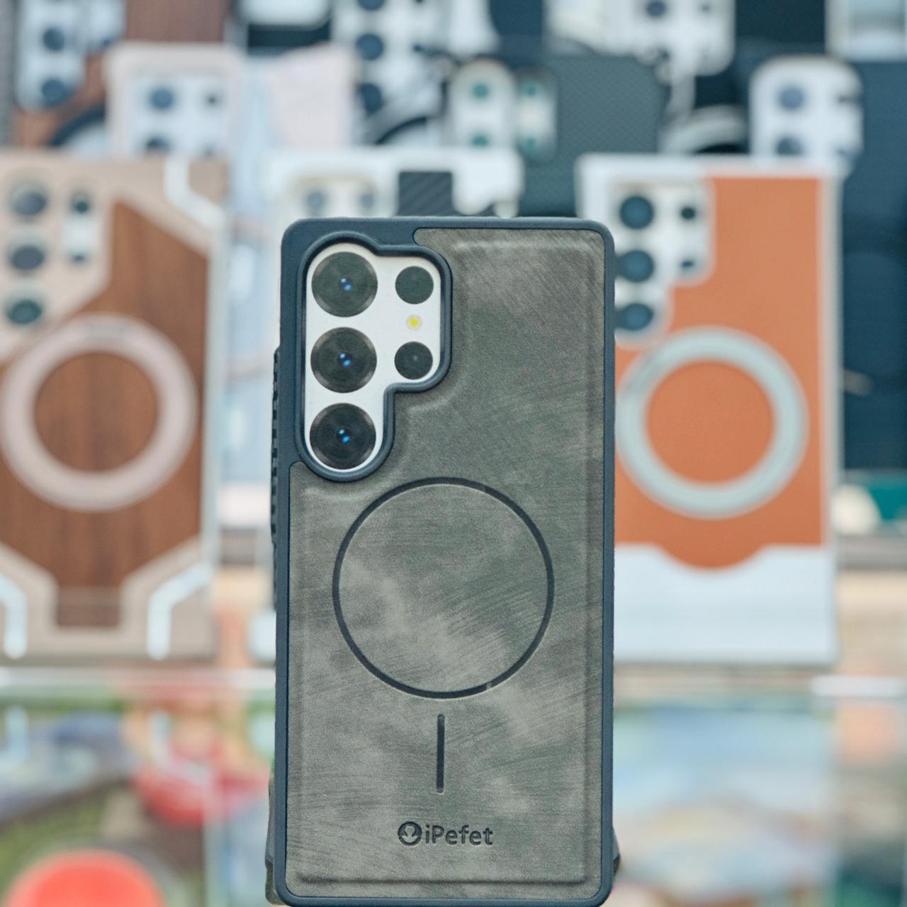 Premium Suede/Alcantara Texture: The back is covered in a soft-touch, brushed material (likely suede or Alcantara) that provides a comfortable, non-slip grip and a sophisticated matte look.