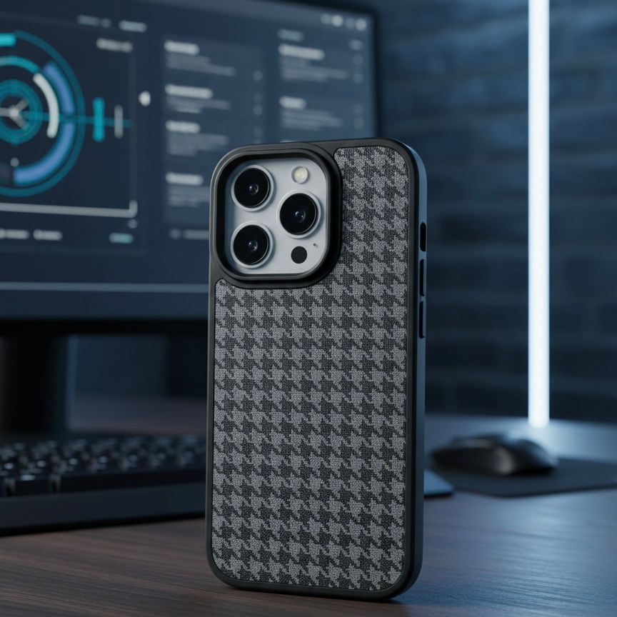 Iconic Aesthetic: Features the high-contrast houndstooth pattern synonymous with luxury.