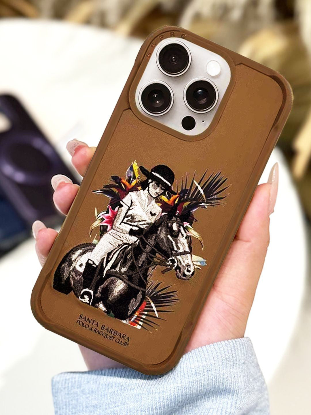 Unique Design: Stand out with the iconic SBPRC logo and artistic equestrian print.