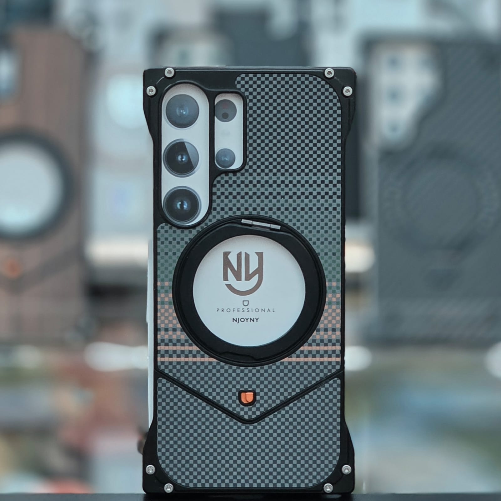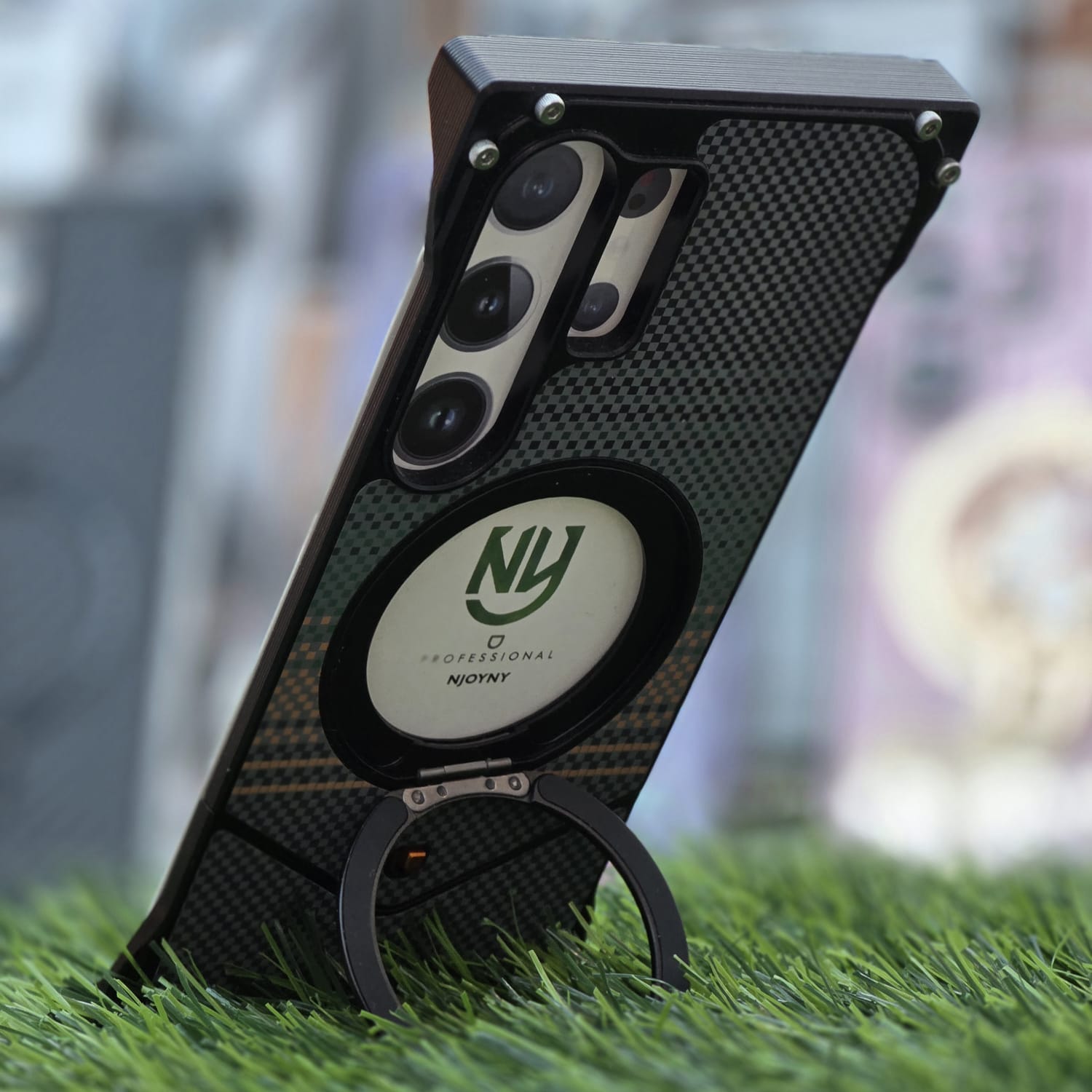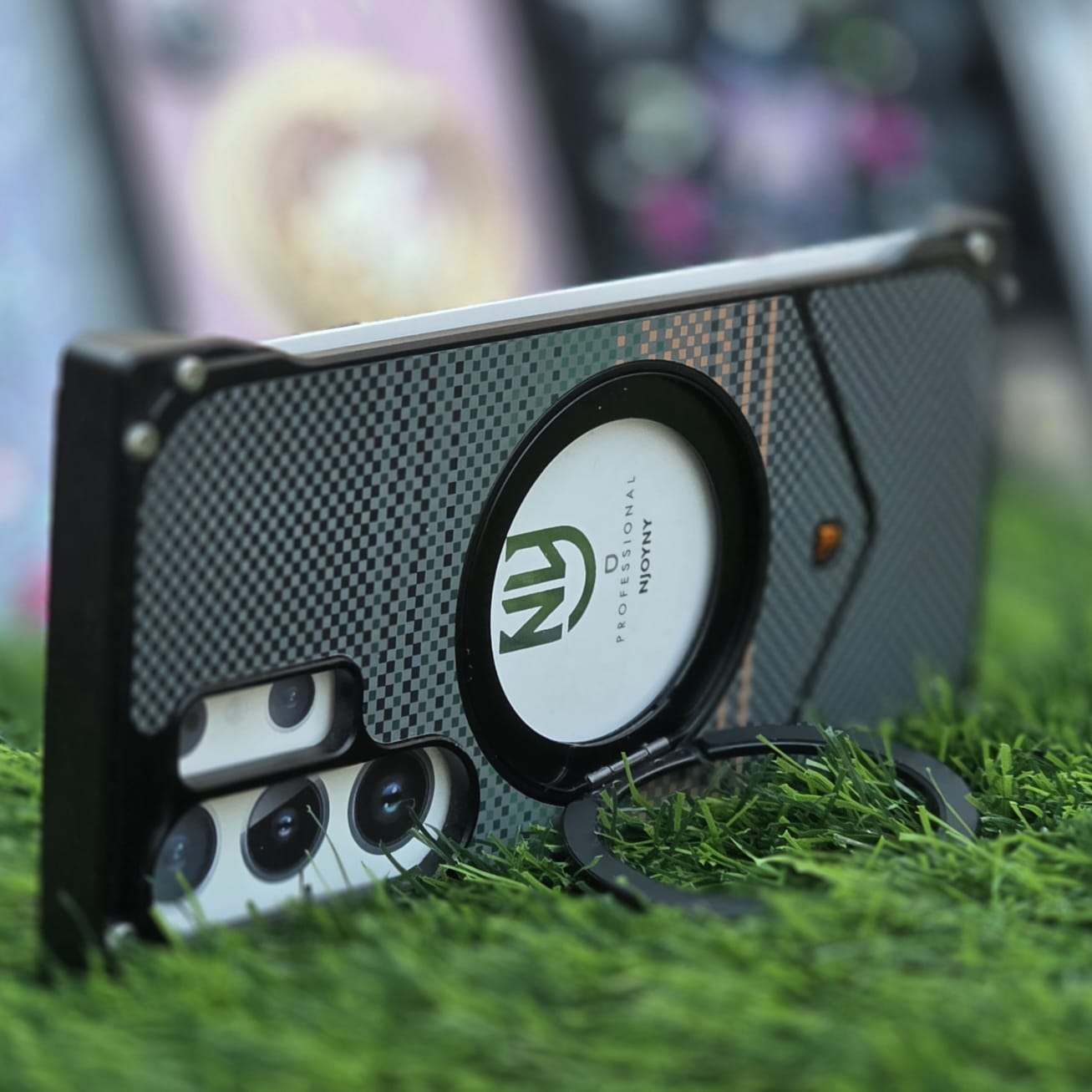 Authentic Carbon Texture: The back panel features a premium checkered carbon fiber finish that is fingerprint-resistant and provides a superior non-slip grip.
