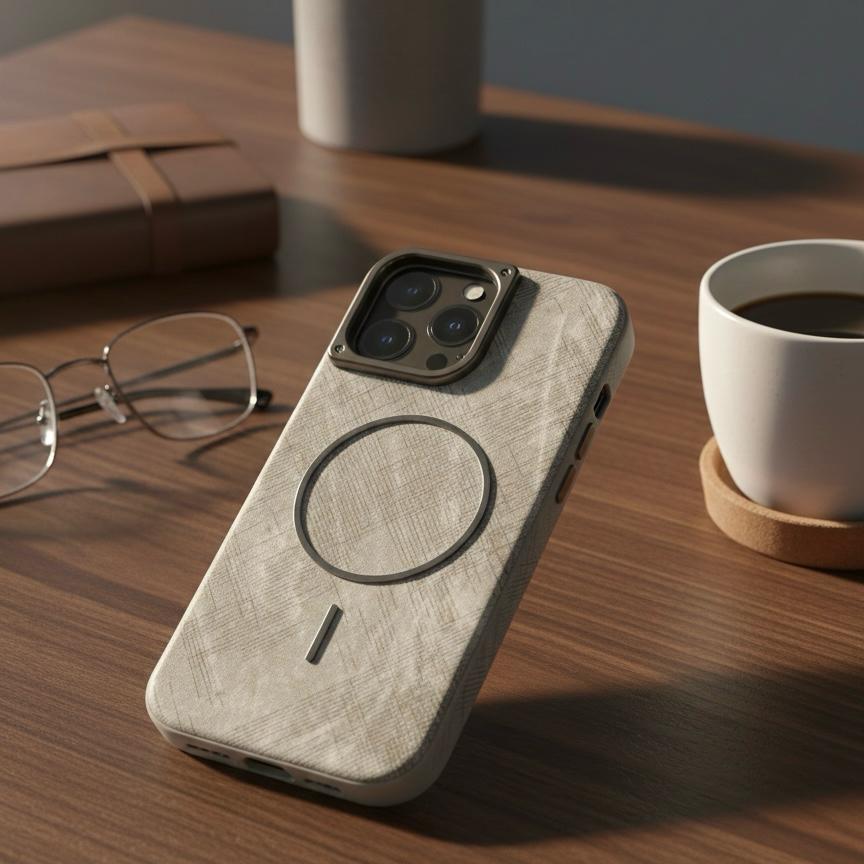 Premium Aesthetic: A neutral, "Natural Titanium" or "Sandstone" color palette that matches the modern iPhone industrial design.