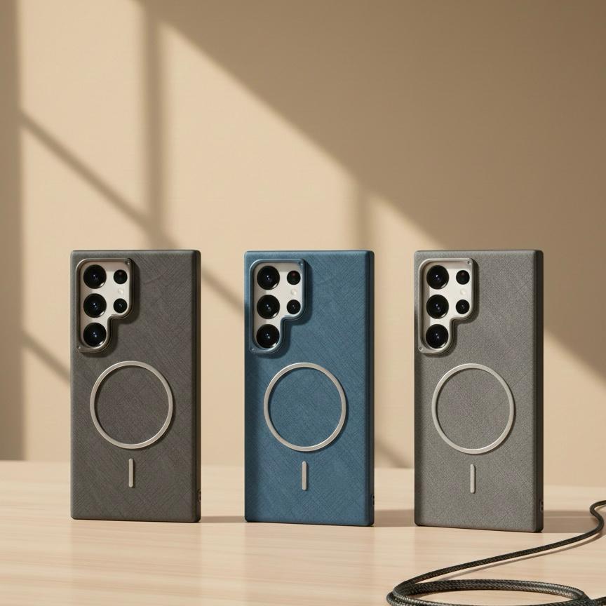 Aramid/Carbon Fiber Texture: The "cross-hatch" linen-like finish provides a sophisticated, non-slip grip that resists fingerprints and scratches.